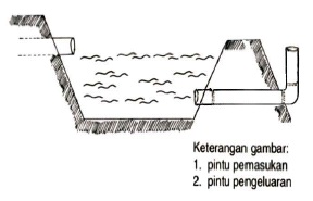 dengan kolam dimana harus mempunyai pintu pemasukan dan pengeluaran air tetapi